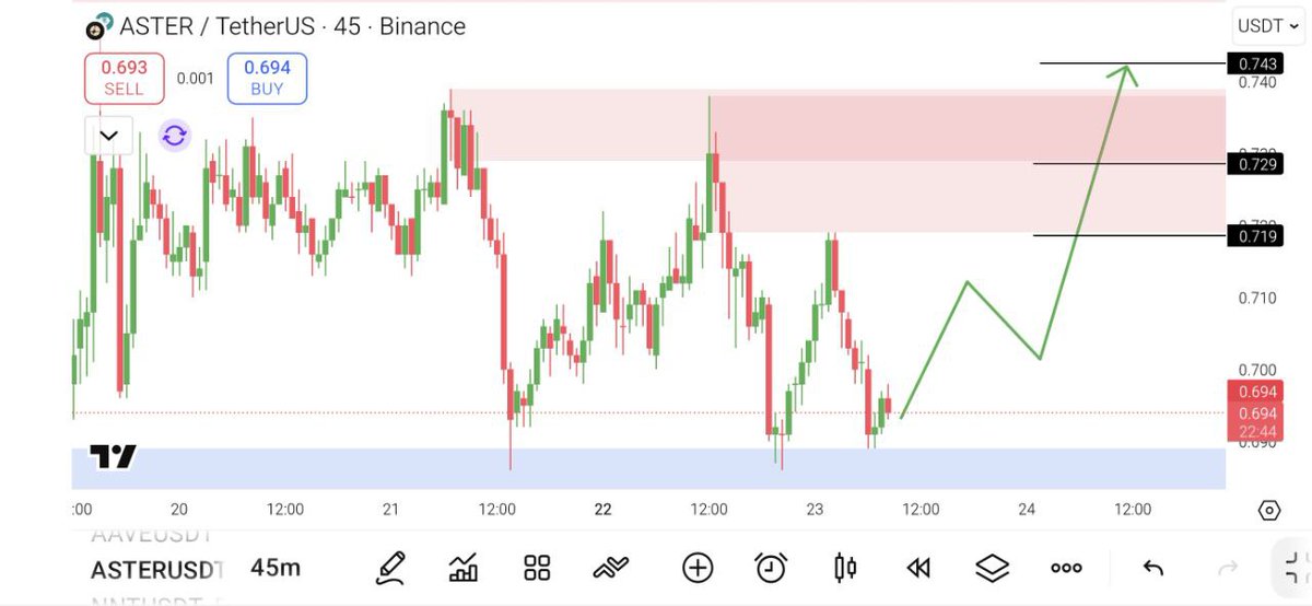 ASTER 클린 스윕 후 베이스 지키는 중. 2시간 전 중립적 2 0 0 매수세가 구간 방어했고 모멘텀이 다시 붙는 분위기.이 구조만 유지되면 0.719 찍고 0.729까지 무난해 보임.그 위로는 0.743도 보인다.더 올려버려 @cz_binance불리시 🥂 스크랩 0 공유 관련링크 https://twitter.com/Stuart_crwon/status/2003389919205700002