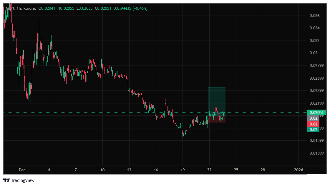 관건은 MON이 2026년 시작까지 $0.02 위를 버티느냐. 그게 내년이 모멘텀 회복의 해가 될지, 조정 연장이 될지를 좌우할 듯.