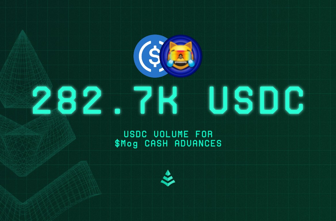 DeFi 대출에서 $Mog를 담보로 총 282.7k USDC 규모의 대출이 이뤄졌음.