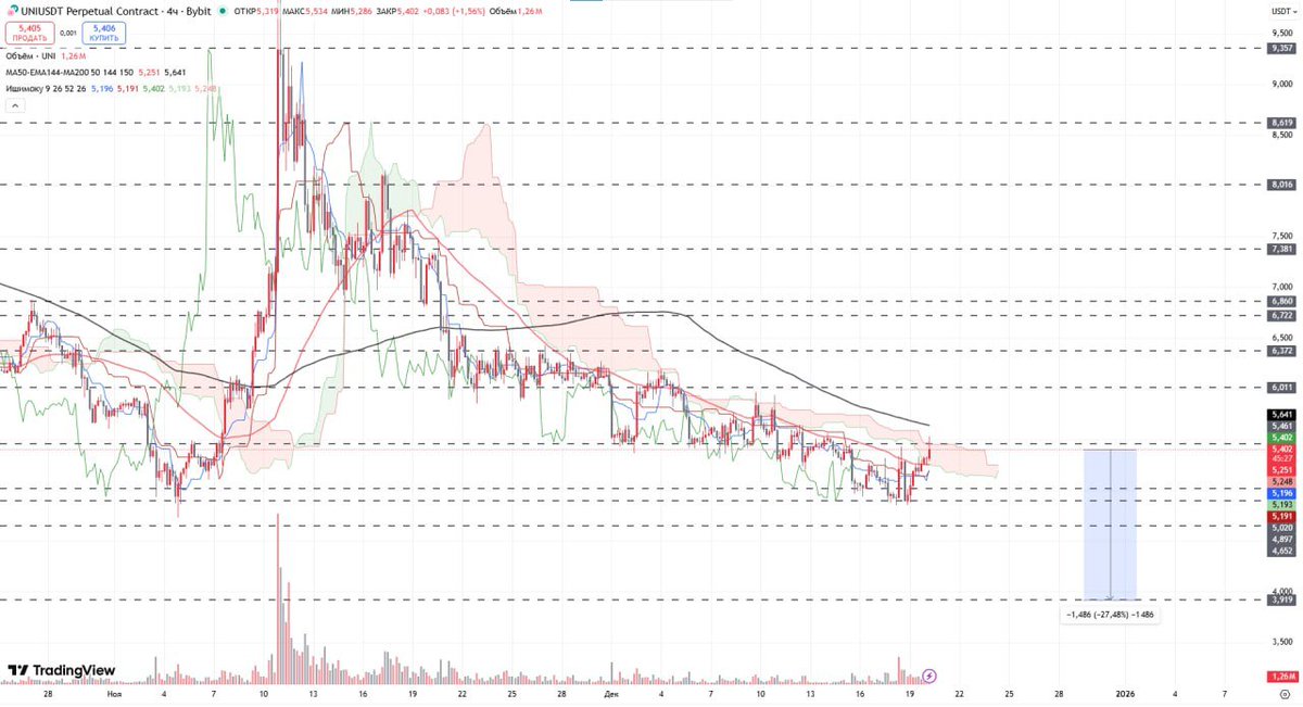 UNI가 이치모쿠 구름대 돌파를 시도 중이지만, 움직임의 대부분이 BTC와의 상관에 의해 끌려가고 있어 독자적인 모멘텀은 부족한 상태. 따라서 성공적이고 지속 가능한 돌파 확률은 매우 낮아 보임.