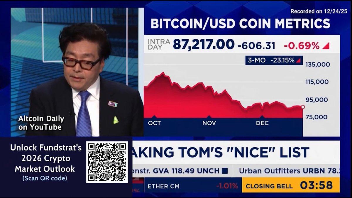 Tom Lee가 이렇게 전망함: N 1) 2026년 초 이더리움 $7k~$9k 2) 2026년 비트코인 $200k 3) 장기적으로 ETH $20k "슈퍼사이클이라는 말을 너무 남발하고 싶진 않다" 2시간 전 중립적 9 0 0