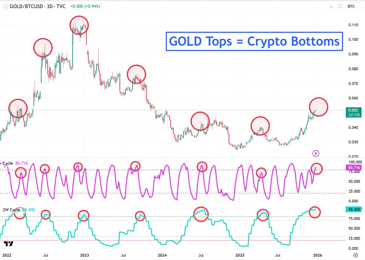 GOLD/BTC 비율이 꼭지 찍을 때마다 비트가 바닥이었고, 코인도 마찬가지였음.