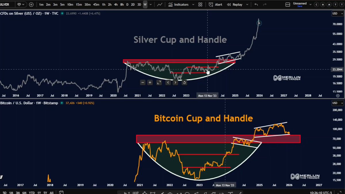 실버가 몇 년 전에 이걸 가르쳐줬지. 1시간 전 중립적 14 0 0 10년 동안 박스권. 다들 지루해했음.그러다 결국 54달러를 돌파하고 미친 듯이 솟구침.지금 비트코인도 똑같은 패턴임:오랜 박스권. 매도세 고갈. 그리고 격렬한 가격 재조정.구조는 똑같고, 자산만 다를 뿐임. 스크랩 0 공유 관련링크 https://twitter.com/MerlijnTrader/status/2005926841908085075