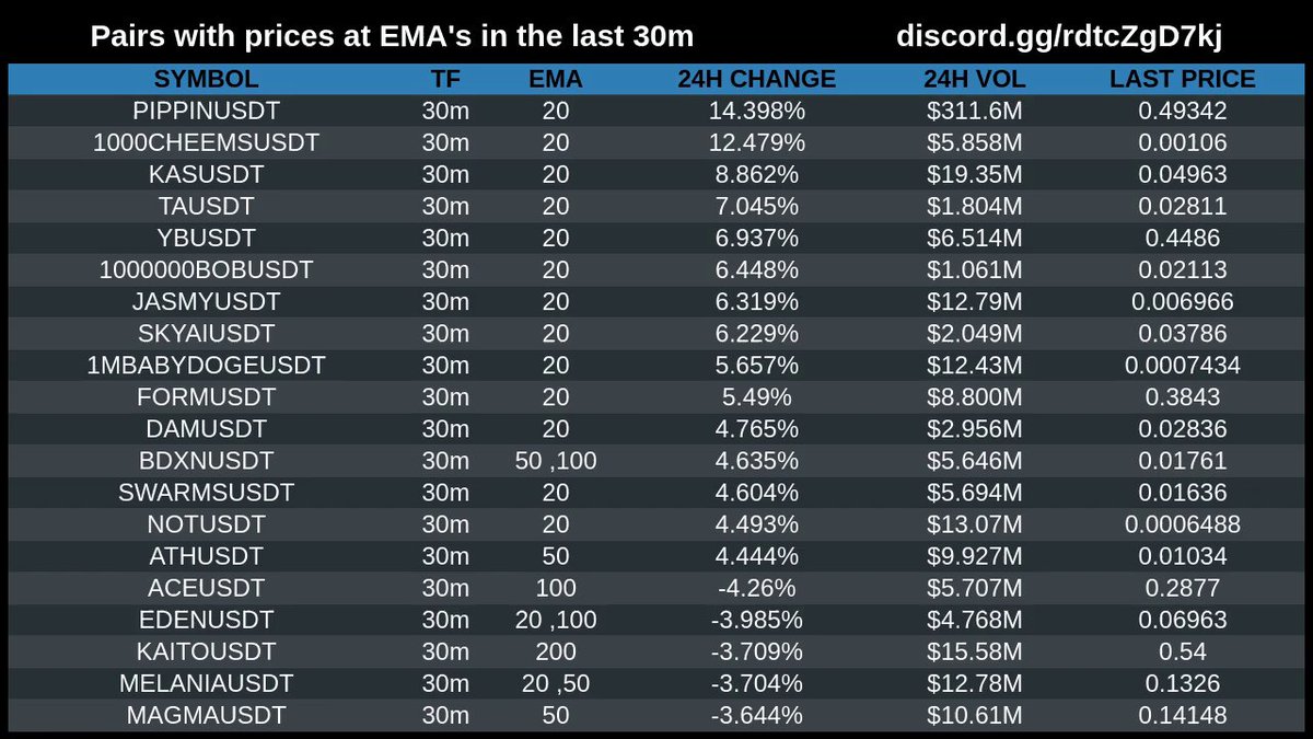 최근 30분 기준 가격이 EMA선 부근인 페어 21시간 전 중립적 11 0 0 PIPPIN $1000CHEEMS KAS TA YB $1000000BOB JASMY SKYAI $1MBABYDOGE FORM DAM BDXN SWARMS NOT ATH ACE EDEN KAITO MELANIA MAGMA더 많은 업데이트는 여기에서 스크랩 0 공유 관련링크 https://twitter.com/cmScanner_EMA/status/2007958409195520025