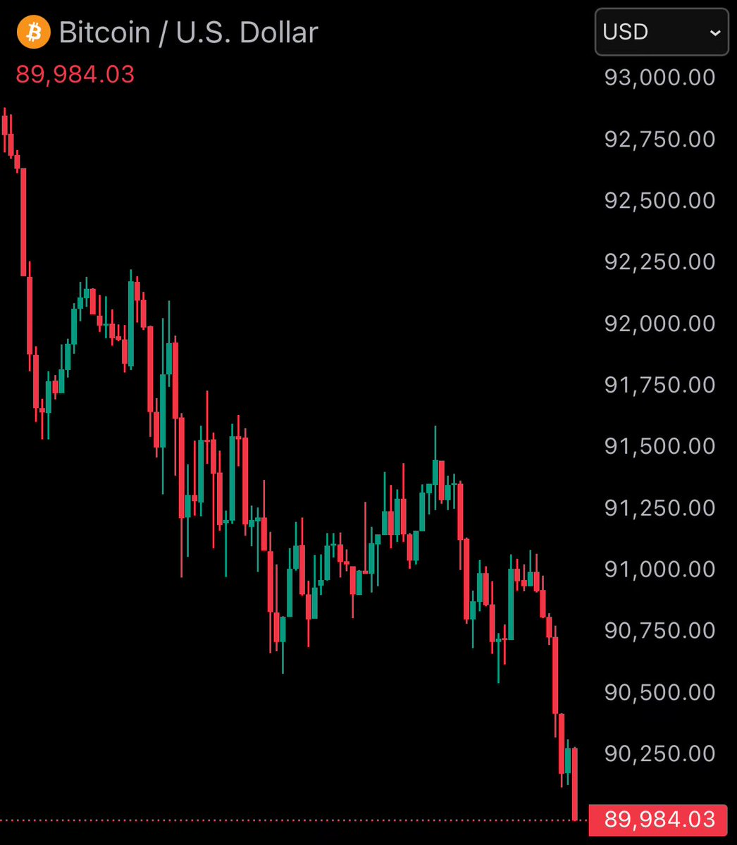 속보) 비트코인 9만 달러 밑으로 하락