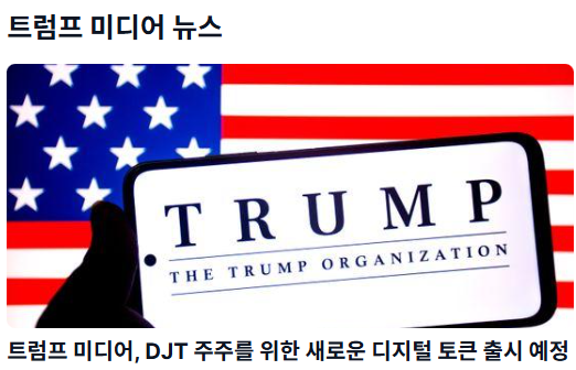 트럼프 신규 알트코인 또 찍어낸다 퇴학당함 회원정보 보기 메시지 보내기 · 1일 전 20 0 0 DJT라고 나스닥에 상장된거 트럼프 미디어 보유하면 1주당 1코인 준다고함 DJT 현재 가격은 약 13불 거의 2만원인듯 오피셜 트럼프 가격 폭락 + 개미무덤 되니까 유기 후 새로운 코인 발행 ㅋㅋ 스크랩 0 공유