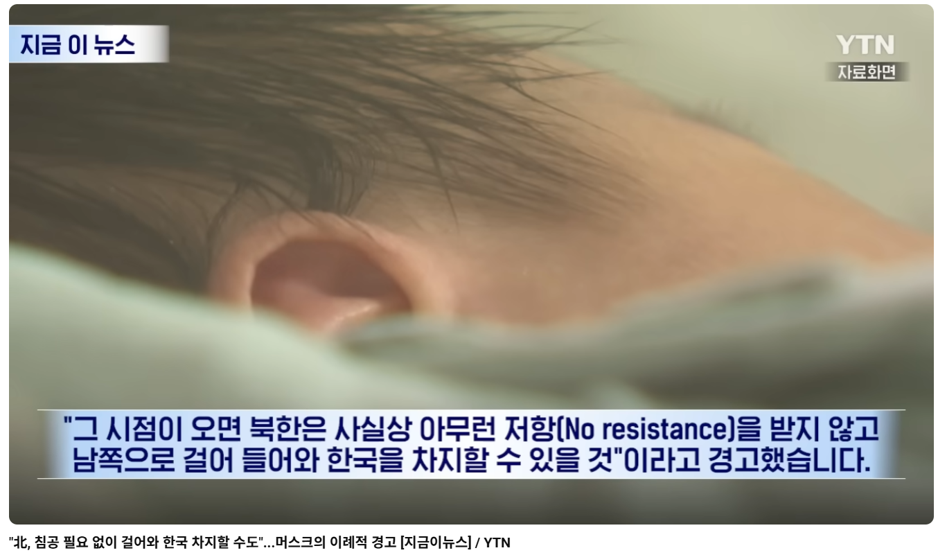 일론머스크 어제자 예언, 100년뒤 한국 없어진다 퇴학당함 회원정보 보기 메시지 보내기 · 1일 전 41 1 0 어제 문샷 토크쇼에서 남한 인구 알아서 소멸하니까 북한이 80~100년뒤 그냥 걸어내려오면 남한 차지할 수 있다고함 스크랩 0 공유