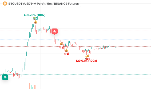 일봉 신호는 거의 4-7개월에 한번뜨네 ㅋㅋ 근데 최근에 숏 떴고 아직도 진행중이네 저때 95k에서 신호뜨고 80k 까지 밀렸구나 ㄷ 그러면 작은 캔들들도 (5분~4시간) 숏이 유리한게 맞음? 유리한 쪽 포지션만 들어가려고함 불개미 · 5일 전 27 1 0