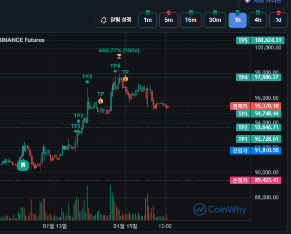 1시간봉도 93.5에서 몇시간 횡보치면 숏추세로 전환될수도 있는 상태입니다