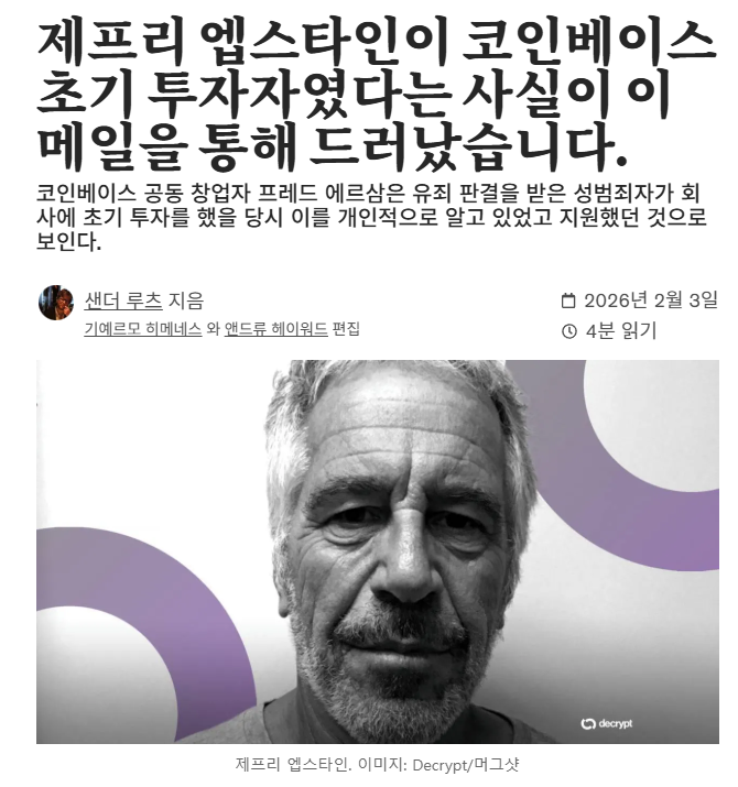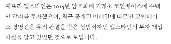제프리 앱스타인은 코인베이스 초기 투자자였다 N 앱스타인이 손을 안댄게 없네 ㅋㅋ 비트코인 창시자들한테 투자 + 각 거물 거래소들 투자 바이낸스 ceo도 연관되어 있으면 좀 많이 흔들릴듯 August17 · 2시간 전 16 0 0