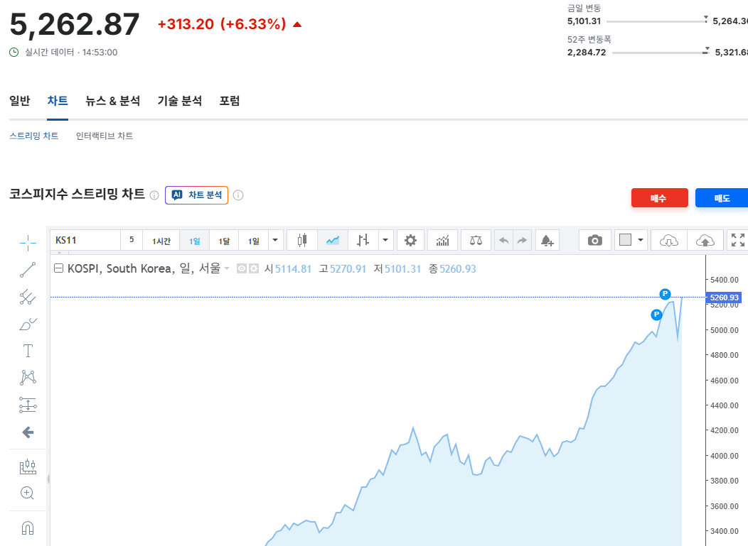 코스피는 ㄹㅇ 고점이 어디인지 아예 모르겠네 N 모든 기법으로 계산해봐도 저항받아야 할 고점 그냥 뚫어버려서 그 다음이 예측이 안간다 5000 부근에서 원래 한번 쉬었다 뚫거나 했어야 하는데 이건 그냥 뚫어버려서 모르겠다 포기 내일도맑음 · 1시간 전 27 0 0