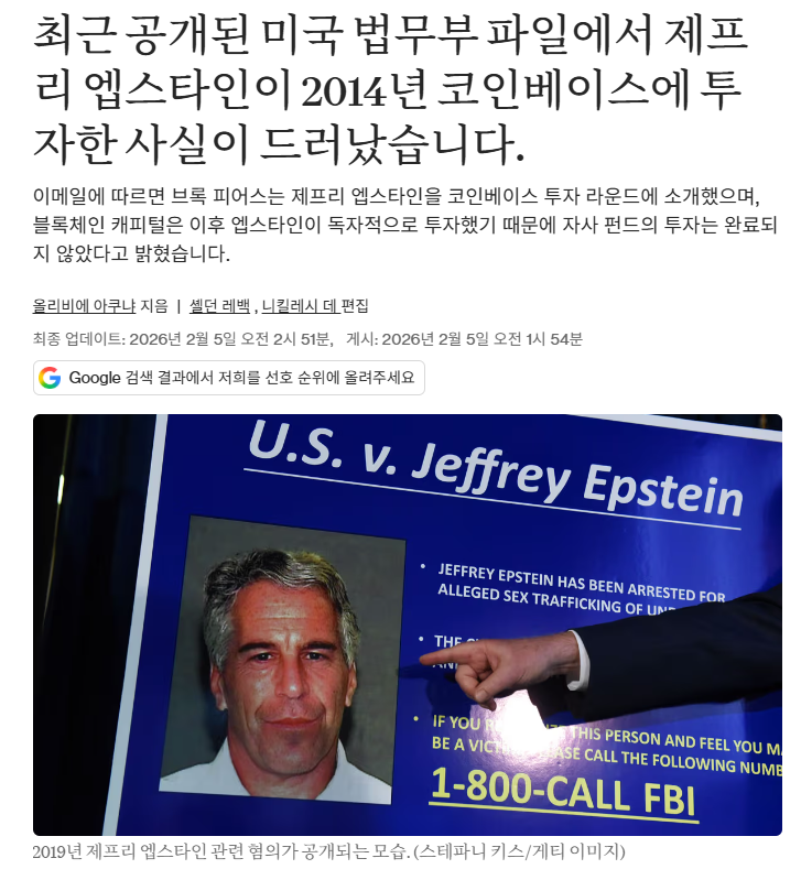 2014년 앱스타인 코인베이스에 300만불 투자했었다 August17 회원정보 보기 메시지 보내기 · 2시간 전 19 0 0 미국 법무부 이메일 내용을 보니 주변에서는 말렸지만 300만불 투자했고 결국 그 금액이 성매매,인신매매 등의 금액으로 쓰였을 가능성도 있따 FTX다음은 코인베이스냐 스크랩 0 공유