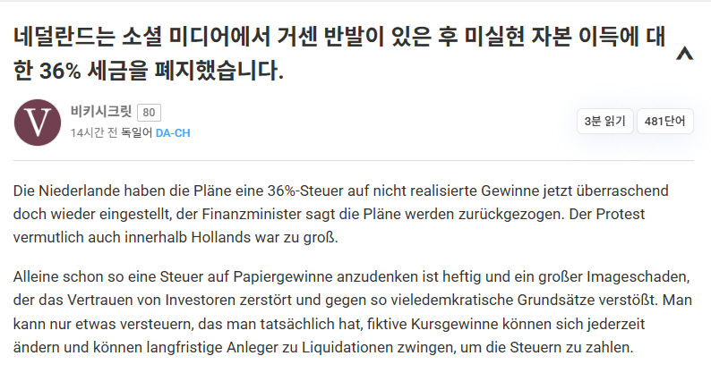 네덜란드 코인 미실현 수익 36% 과세 취소결정