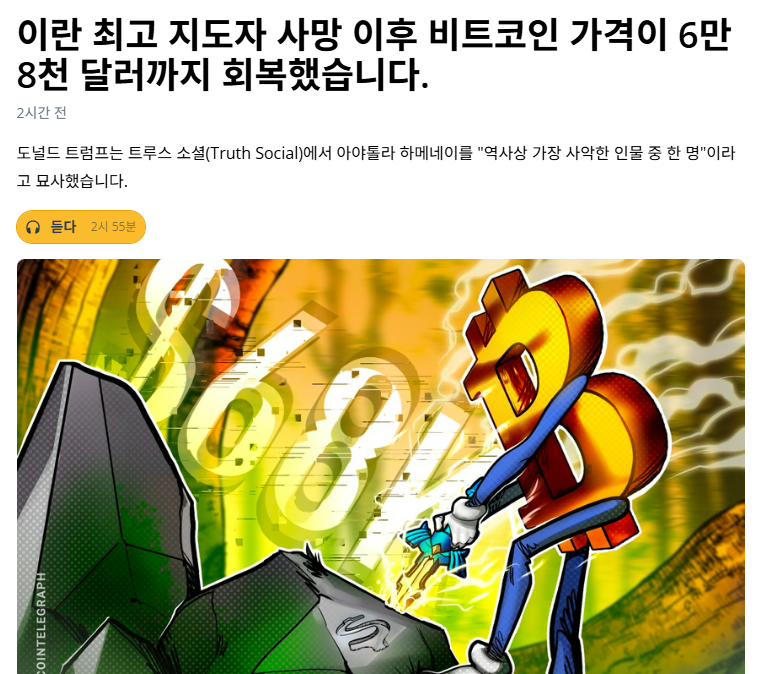 이란 최고 지도자 사망.. 정밀타격 내일도맑음 회원정보 보기 메시지 보내기 · 2시간 전 8 0 0 진짜 미국은 보면 볼수록 대단하다 마음만 먹으면 러시아처럼 에겐 전쟁도 아니고 그냥 한방에 끝내는구나 스크랩 0 공유
