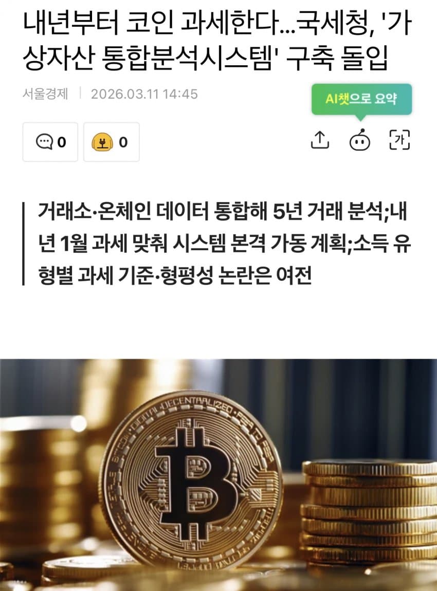 2027년부터는 코인과세 진짜로 할거같음; N 이거로 인해서 개발성없는 잡알트에는 유동성 사라지고 묻지마 투자하는 사람 없어질거 같음 미래방향이나 기술성 확실히 있는 알트만 갈듯 네카구 · 1시간 전 16 0 0