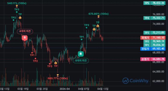 4시간봉 숏으로만 바뀌지 마라 August17 회원정보 보기 메시지 보내기 · 3시간 전 25 1 1 제발 롱 좀만 더 길게뽑아주라 TP6까지만 코인 언제 매수하면 될까? 코인와이 AI차트가 알려줄게요! 차트보기 실시간 암호화폐 소식 인기글 [속보] 미·이란 회담이 합의 없이 종료됐다는 소식에 #비트코인 급락 🚨 🚨미-이란 회담 결렬 소식에 비트코인, 20분 만에 1,800달러 급락. 난 아직 $BTC가 이미 바닥 찍었다는 건 꽤 대담한 주장이라고 봄. 이번 펌핑, 내가 완벽하게 맞췄다. BTC 바닥은 깔끔한 HL로 안 만들어짐. 두 달 동안 지지 구간을 방어하던 비트코인이 드디어 7.35만 달러 부근의 핵심 저항을 테스트하려 한다. 여기서 돌파 나오면 다시 9만 달러선까… 💥속보: 비트에 작은 라이징 웨지 하나 그려지네 72,352달러에 비트 숏 잡았다. 청산가는 16.3만 달러. 여기서 청산 당하면 우리 다 부자 된 거지 :) 오늘 74k 물량 이거 먹으러간다 스크랩 1 공유