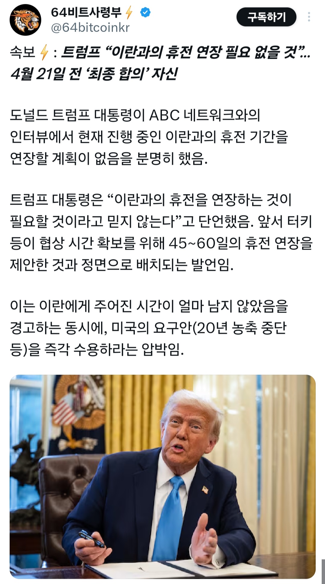[속보] 트럼프 이란과 4월21일까지 합의 퇴학당함 회원정보 보기 메시지 보내기 · 2시간 전 18 0 0 4월 21일까지 합의 절대안된다고 반대로 생각하면됨 ㅇㅇ 코인 언제 매수하면 될까? 코인와이 AI차트가 알려줄게요! 차트보기 실시간 암호화폐 소식 인기글 비트 구름대 돌파 시도 비트코인은 매 사이클마다 ATH(사상 최고가) 찍고 정확히 23개월 뒤에 바닥 찍었음 🔥 비트코인, 10월 이후 고점 저항 돌파. 다음은 9만 달러 재테스트 비트코인 4년 주기는 사라지지 않았다 밑에글 반박, 4년주기는 깨졌다 [속보] 트럼프 마이클세일러 구조작전 시작 메이저 알트들도 이제 뒤지는구나 코스피 전고점 살짝 넘기고 죽을걸로 추측 업비트 VS 빗썸 코인 펌핑량 비교 Cheds, 난 어떤 가능성도 무시하고 싶지 않아. 차트엔 확실한 건 없어. 그리고 확률은 한 시점만 떼어놓고 보면 의미가 없어. 스크랩 0 공유