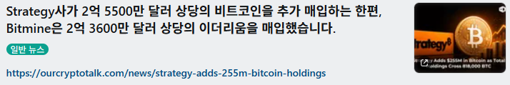 스트래지는 비트매입, 비트마인은 이더매입 퇴학당함 회원정보 보기 메시지 보내기 · 2시간 전 5 0 0 과연 올해말 승자는 누가될것인가 코인 언제 매수하면 될까? 코인와이 AI차트가 알려줄게요! 차트보기 실시간 암호화폐 소식 인기글 이 뉴스에 비트코인 반응 중 속보) 마이클 세일러, 비트코인 추가 매수 시사. "비트는 계속된다." 🐳 오늘 트럼프의 크립토 연설 앞두고 한 고래가 크립토 시장을 숏 때리는 중. 코스피 전고 시원하게 돌파.. 쾅! 🚀 비트코인 7만8천 달러 재돌파 비트 바닥나왔다 vs 안나왓다 논쟁할 이유가 없음 내가 말한 대로 정확히 흘러가고 있다. 비트코인 RSI 다이버전스 상방돌파 대형 소식: 내가 말한 대로 정확히 가고 있다. 스크랩 0 공유