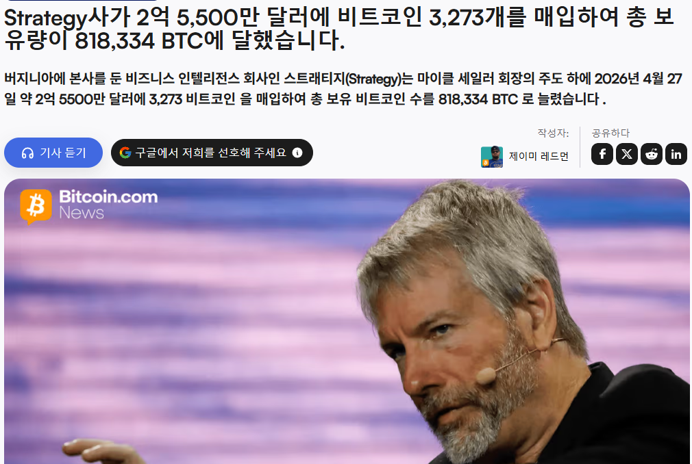 마이크로 스트래지 딱 100만 비트까지 채우겠네 N 100만비트 채우면 전세계 보유량 딱 3위찍음 상징적이기도하고 근데 이 이후로는 매입 더이상못할듯 공탐지수 · 2시간 전 6 0 0