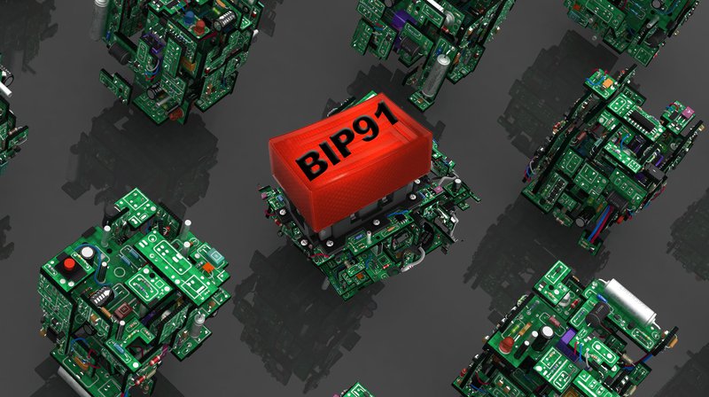 비트코인 개선 제안서 BIP 91이 2017년 7월 20일 채굴자 97% 지지로 락인됐다. 비트메인 워런티 엔지니어 제임스 힐라드가 제안한 이 내용은 세그윗(Segregated Witness) 기능을 비트코인 코드에 추가해 라이트닝 네트워크 같은 2차 레이어 솔루션을 활성화한다. BIP 91 찬성 측은 블록 크기를 1MB로 유지하려 했으나 중국 채굴자들은 8MB 확대를 주장하며 커뮤니티 대립이 심화됐다.