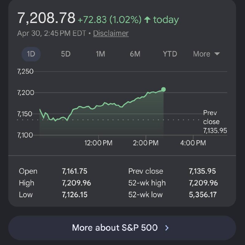 S&P 500 지수가 7,200으로 마감하며 2020년 이후 최고의 월간 실적을 기록했습니다. 이번 상승은 3월 말 이후 거의 10% 상승한 것으로, 투자자들은 이번 주에도 기록적인 성과를 이어갈 것으로 기대하고 있습니다.